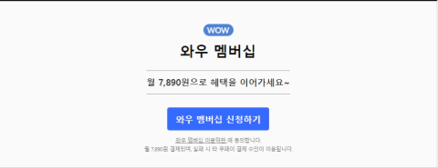 쿠팡 와우 멤버십은 월 7,890원입니다. 쿠팡 와우 멤버십을 가입하시면 쿠팡플레이 무료 시청이 가능합니다.