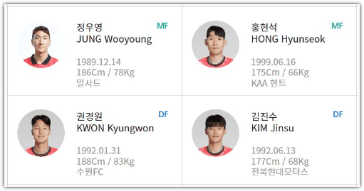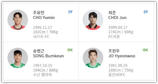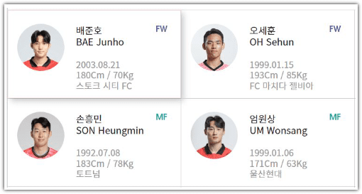 이번 경기에도 자랑스러운 우리의 캡틴 손흥민 선수가 주장을 맡게 됩니다. 기존 활약 했던 김민재, 조규성이 부상으로 빠지고 새로운 선수들이 7명이나 대거 발탁되었습니다. 감독은 임시직으로 김도훈 감독이 맡게 됩니다. 아래에서 새로 선발된 23명의 최종 엔트리명단을 참조 부탁드립니다.
